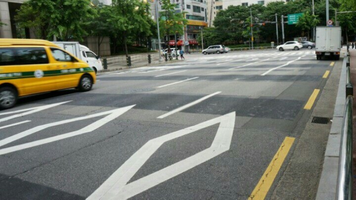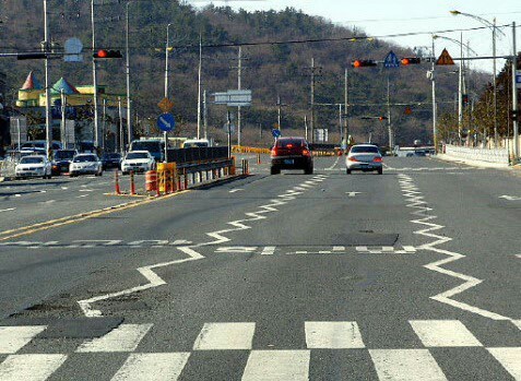 이런 지그재그표시는 어린이 보호구역이나