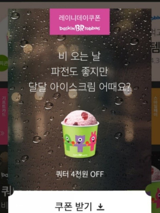 파스쿠치, 파리바게트, 베스킨라빈스, 던킨에서 특정 제품을 할인 받는 쿠폰