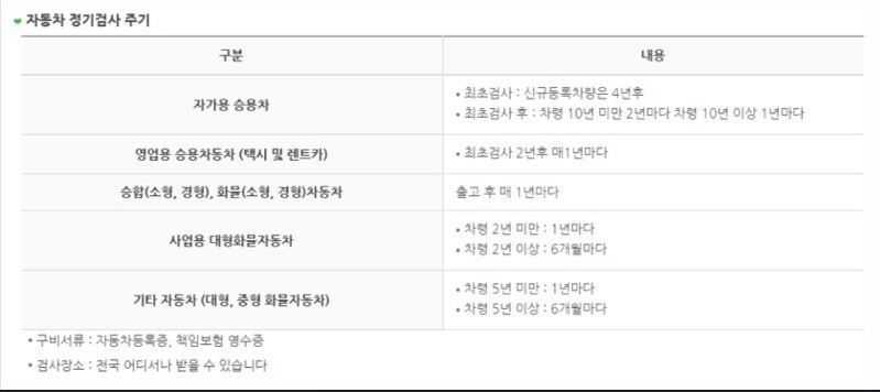 자동차 신규등록 후 4년, 이후 1~2년마다