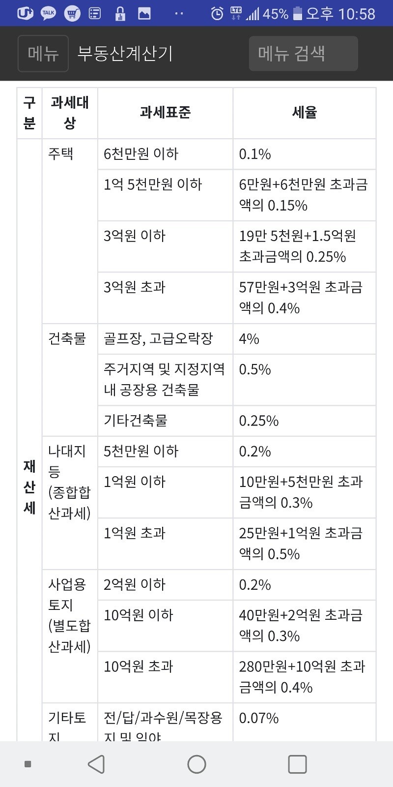 이렇게 힘들게 계산하시지 말고 계산법은 방법만 알아 두시고 간편하게 아래앱 ★부동산 계산기★ 를설치하여 이용하시면 중계 수수료, 등기 수수료, 각종 세금 및 대출 예상금액까지 알수 있어요~~