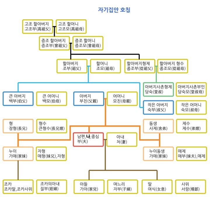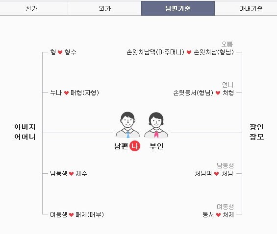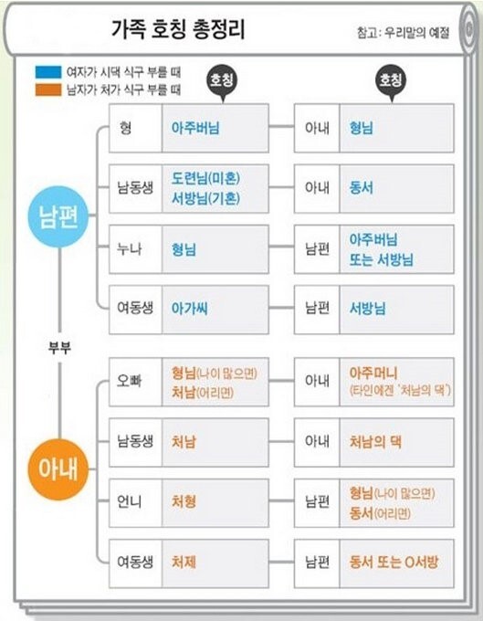 아래 그림은 남편과 아내기준으로 각각 정리한 호칭 자료에요~~참고하세요^^