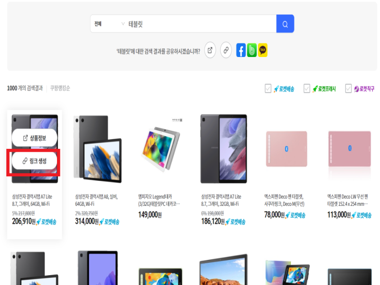 먼저 쿠팡 파트너스는 쿠팡에서 판매하고 있는 상품 링크를 복사하여 본인이 운영하고 있는 블로그나 페이스북 같은 SNS에 배너 또는 링크를 올리기만 하면 되요.