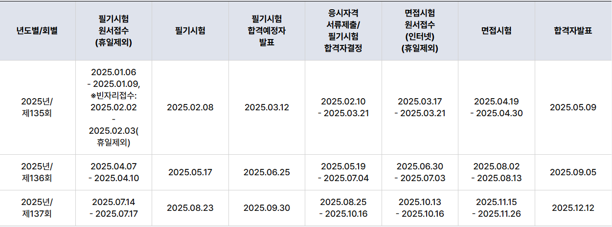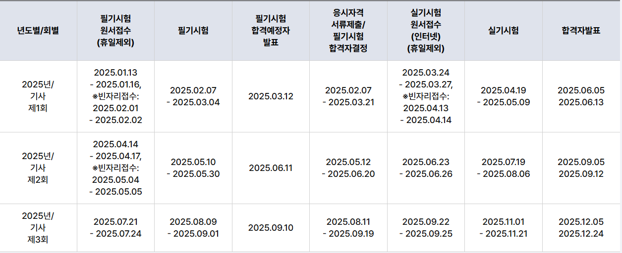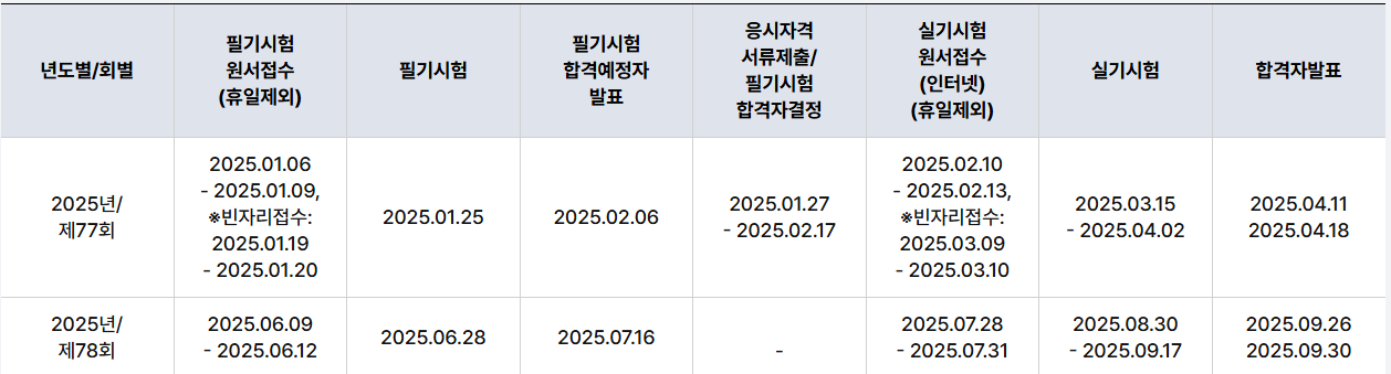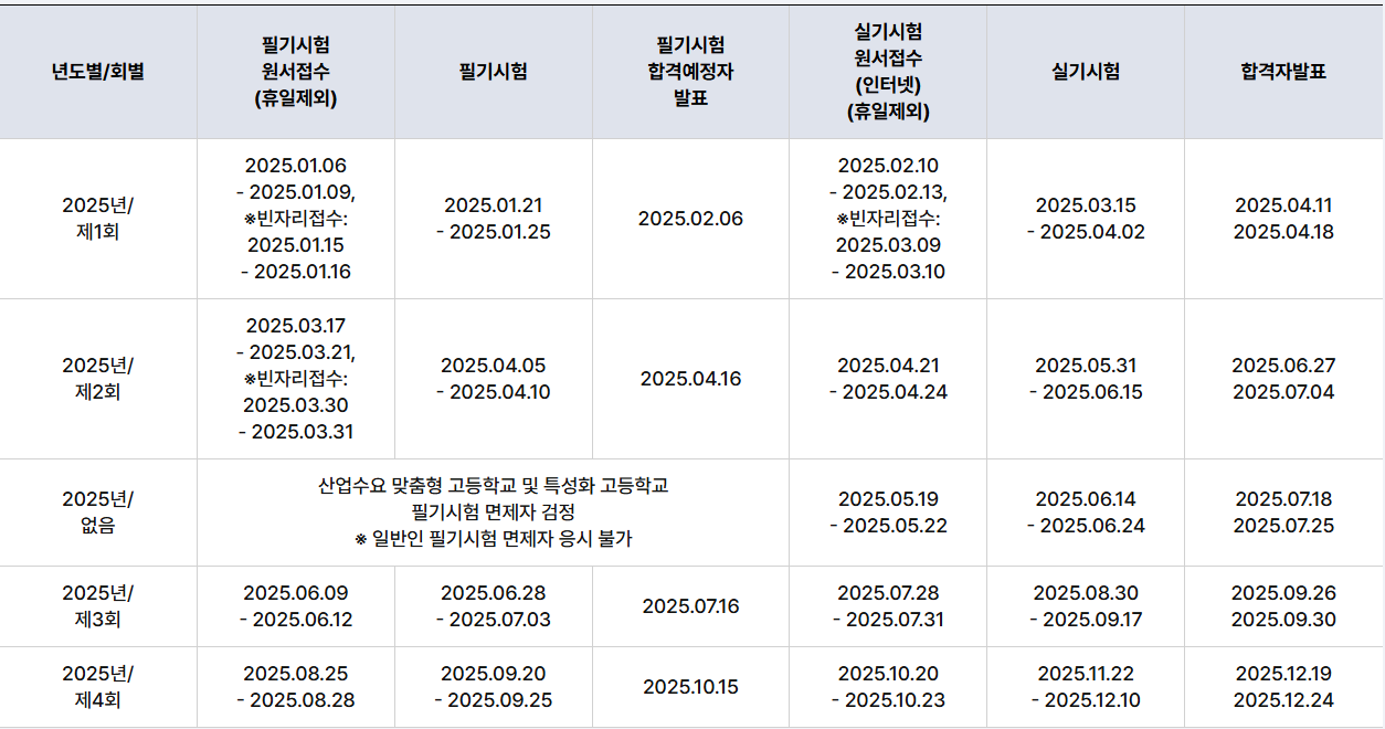 - 시험 일정은 종목별, 지역별로 상이할수 있음
