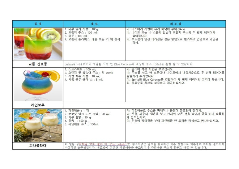 무알콜 칵테일(모크테일, Mocktail)은 술이 들어가지 않으면서도 맛과 분위기를 즐길 수 있는 간단하고 인기있는 음료 몇가지를 소개할게요