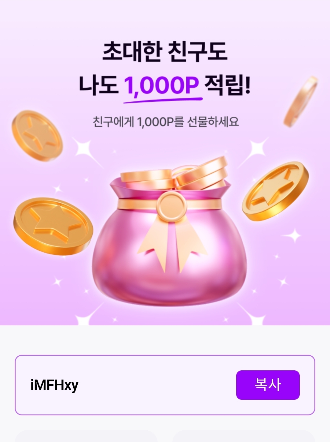 가입할 때 추천인 코드를 입력하면 보너스 포인트 추가 적립되어 시작이 더 유리해요!